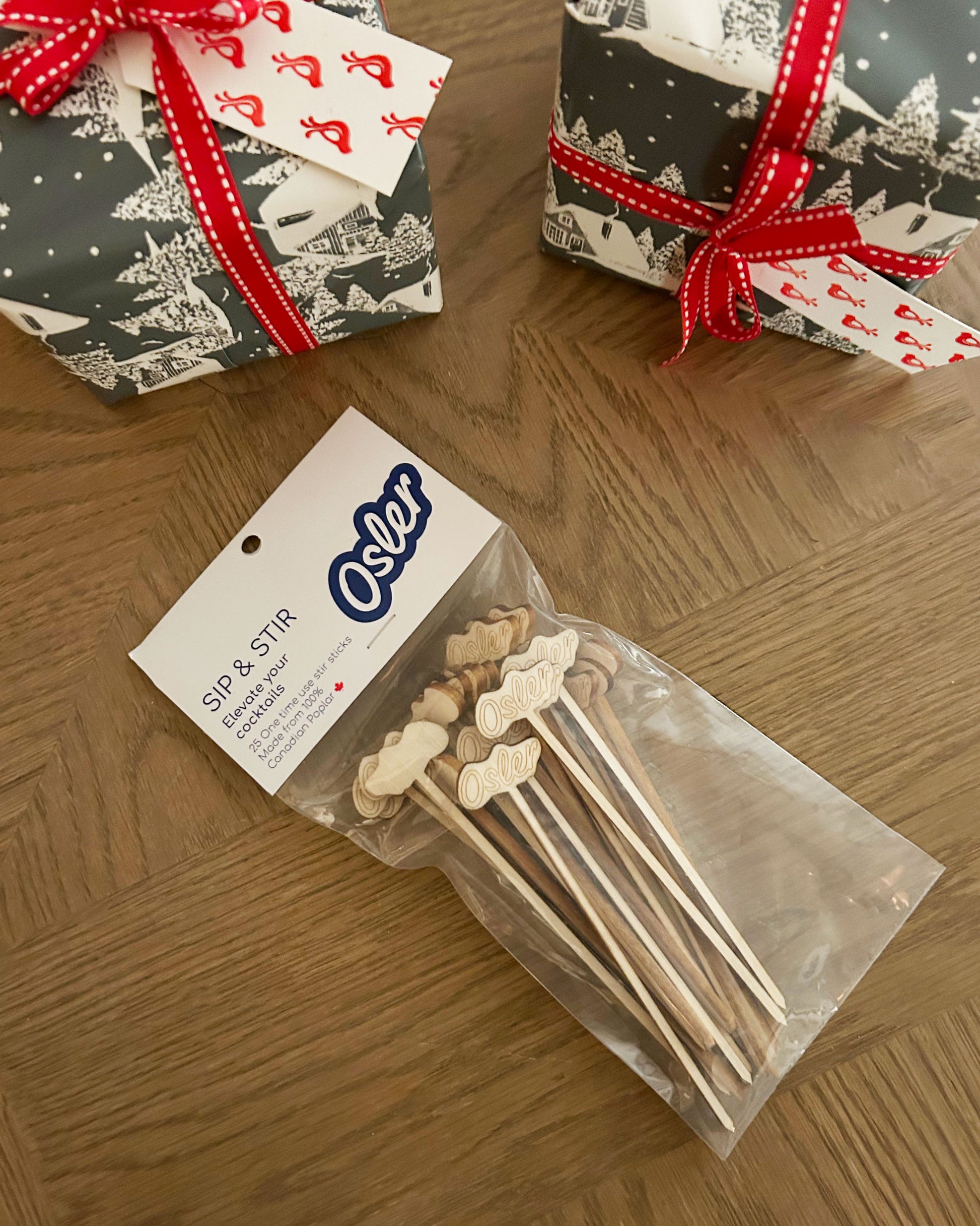 Elevate your après with our fabulous slopeside stir sticks. Where sustainable meets luxurious, these 5-inch swizzles are made of beautiful Canadian Poplar by a local artisan. Wether you spent the ski day perched on the deck watching the racers on Slalom or skinning up Band de Soleil, our Osler stir sticks will take your après over the top.